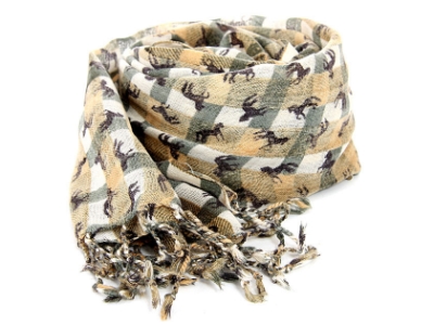 Women's Horses over Boxy print Wool Scarf in Beige/Gold 27.5 x 72 inches #WJ-56 Fashion Scarves Wraps