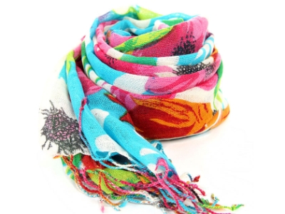 Women's Vibrant Floral Print Wool Scarf in Turquoise/Multi 27.5 x72 inches #WJ-76 Fashion Scarves Wraps$22.99