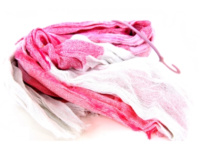 Crinkled Two Tone Woven Polyester Scarf with eyelash fringes all around it. Soft and lightweight to use & comes on a small round hanger. Imported. 100% polyester.