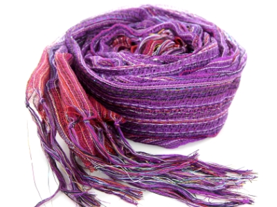 Lightweight sheer polyester scarf with shining woven multi colored stripes and long knotted fringes on its edges. Contrasting borders of the scarf give an edge to this scarf which can be used all year around. Imported.