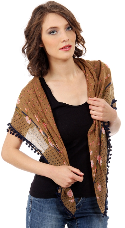 Women's Floral & Polka Print Lacey Scarf in Tan/Multi 40 x 40 inches #jj1103024-43 Fashion Scarves Wraps$13.99