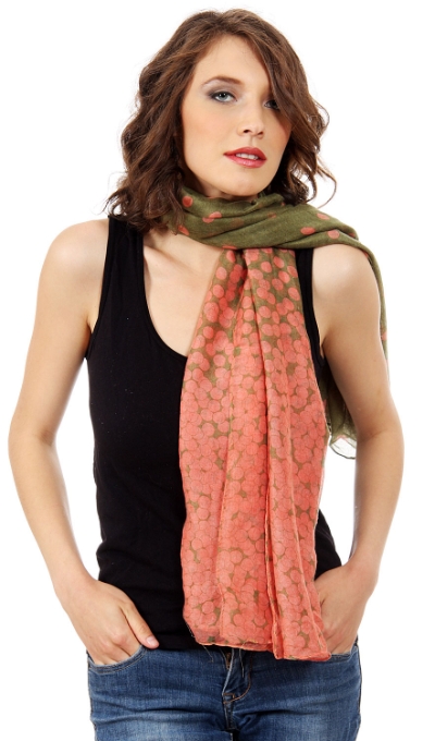 Women's Two Tone Polka Dots Wrap in Green/Orange 55 x 55 inches #jj1205023-20 Fashion Scarves Wraps$12.99