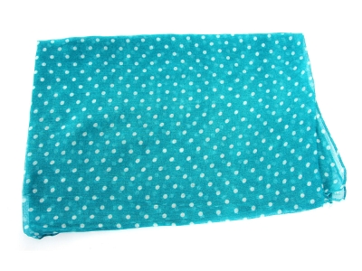 Small polka dots decorate this bright colored 100% polyester scarf which can be used all year around in number of possible ways.
