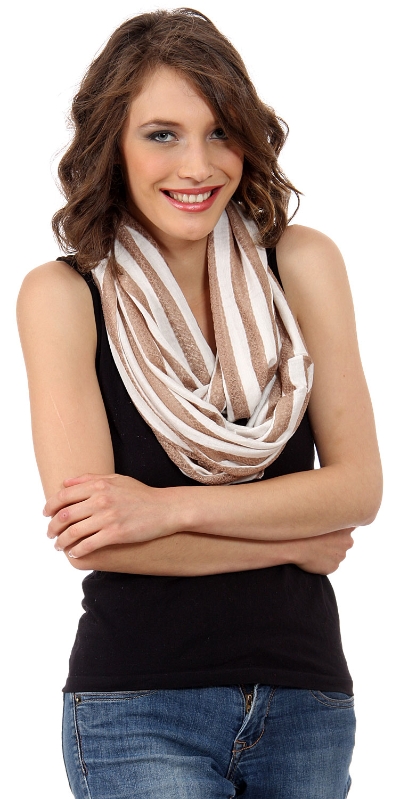 Women's Striped Lace Infinity Scarf in Beige/Mocha 24 x 36 inches #jj1309031nb-02 Fashion Scarves Wraps$13.99