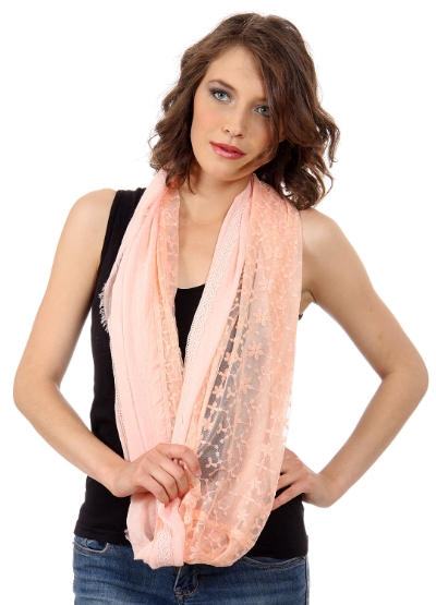 Women's Floral Mesh Insert Infinity Scarf in Peach #jj1311166n-23 Fashion Scarves Wraps$15.99