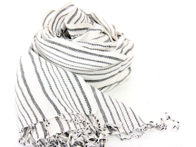 Women's Textured Viscose Scarf with Stripes in White/Black 20 x 70 inches #metro-130 Fashion Scarves Wraps