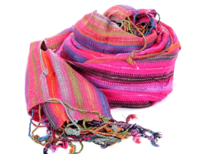 Yarn dyed 95% viscose and 5% Metalic open weave scarf.
