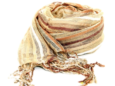 Yarn dyed 100% viscose open weave scarf in varied shades of gold & decorated with long twisted fringes at its borders. Imported.