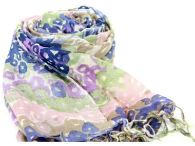 Miniature flowers in shades of pink, green, royal blue, purple colors bloom over this beige yarn dyed 100% viscose scarf. Thread like fringes on its edges completes this scarf. Lightweight & soft to use all year around. Imported. Hand wash.