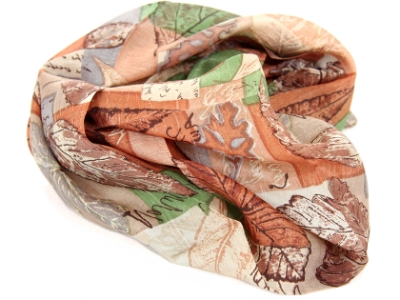Boxy print 100% silk scarf with different shapes of leaves in shades of brown & orange. Artistic print inspired by garden theme can be matched with any kind of outfit & suited for any occasion. Made in India.