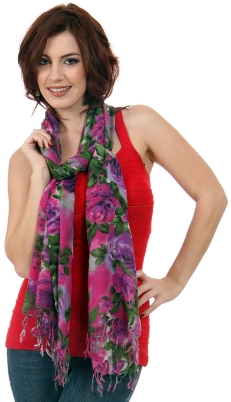 Pink Polyester Floral Design Scarf For Women #SF-2200 $9.98 |