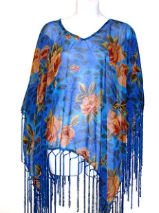 Floral Painted V-neck Poncho With Tussels #pq-5 $21.99 |